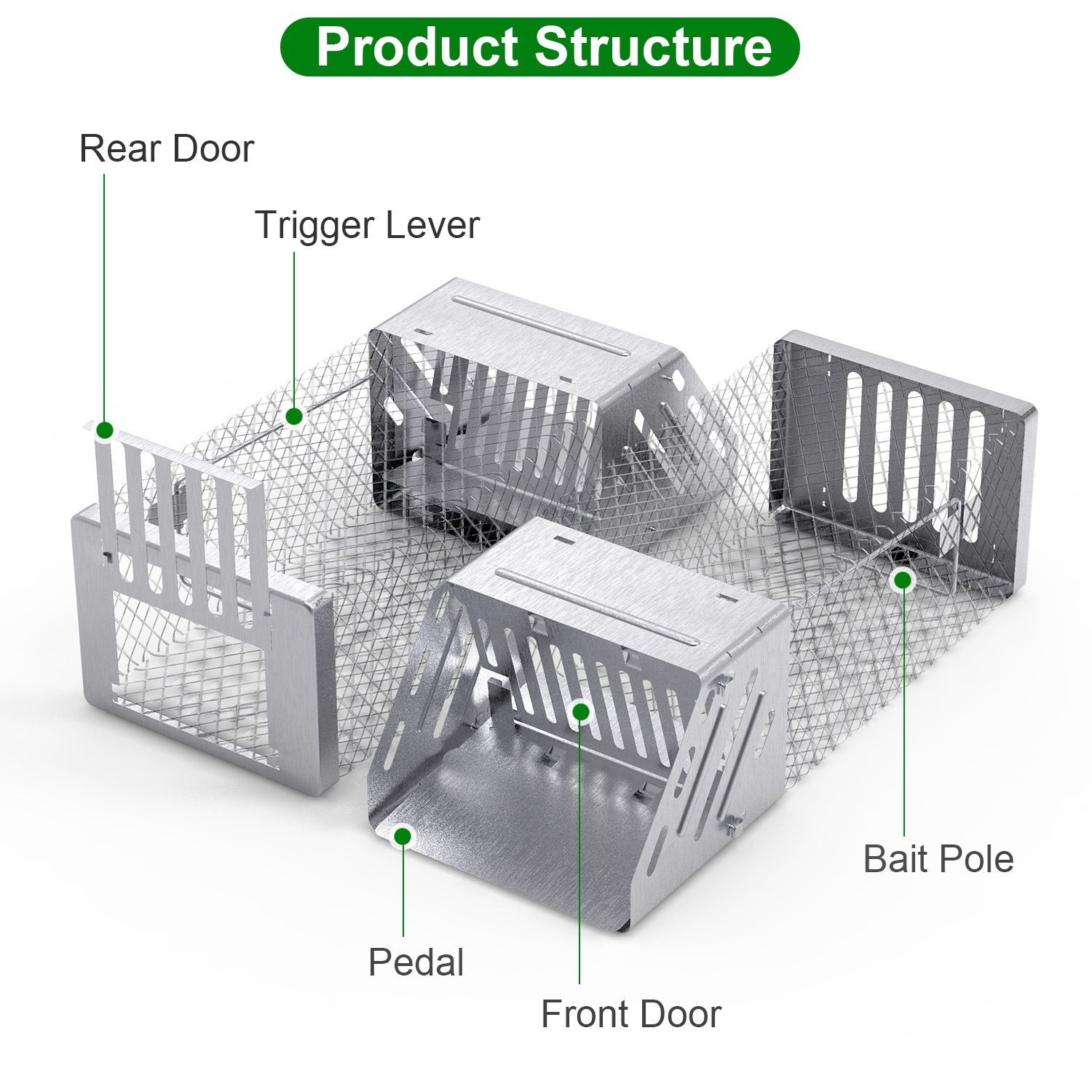 *Continuous Mice Catching*:With one-way door mechanism and highly sensitive pedal,this rat trap can automatically catch rats continuously after setup. Allow for entry but not exit. Quick and effort-saving.